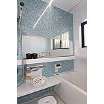 出窓部分を増築して1坪タイプにサイズアップ。脚を伸ばしてゆったり入浴できます。