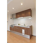 LDKを広く使用するため、壁付けのI型キッチンをご採用。
