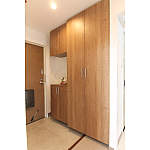 たくさんの洋服が入れられるよう、クローゼットを完備。建具はベッドを近くに置いても開けられる、3枚引戸に。
