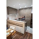 収納の扉を鏡面仕上げにした事で高級感のあるキッチンへと変身しました。