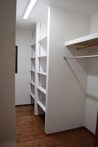 納戸部分と和室部分の一部をウォークインクローゼットに。衣類を丸ごと収納できるスペースを確保。