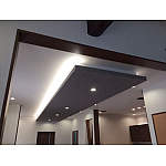 リビングの天井は一部下がり天井に。ダウンライトと間接照明でシーンに合った明るさを楽しめる様工夫。