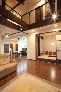 小上がりの和室畳の下にはスペースを有効に使った収納を確保。