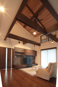 老朽化に伴い冬の寒さが厳しい、また収納スペースが少なく来客の度に片付けるのが負担であることなどから、築35年の平屋住宅の建替を決意されたI様。床暖房や高断熱工法を取り入れたことで、冬の寒さ対策は万全。吹き抜けを設けたリビングは、平屋にはなかった開放的な居心地に。新設した2 階部分には、ウォールラックや読書ス