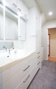 お子様世帯や近所に暮らす親戚の方が集まることも多く、リビングがやや手狭に感じていたO様。「家族が自然に立ち寄れるゆったりとした家にしたい」とリフォームを決意しました。広々としたLDKを実現するため、洗面室のスペースを拡張しキッチンは壁付けから対面