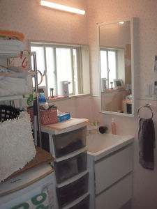 洗濯機との配置を変えることにより明るい洗面台に。