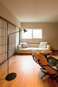 北側にあった部屋は、壁の位置を変更し、暮らしやすい空間にしました。中でも夫婦2人のプライベートリビングは、長く過ごす場所なので、床暖房をつけ居心地の良い空間にしました。プライベートリビング横の和室には、本やプリンターを置くスペースも考えたパソコン用カウンターを作り付へ、寝室を兼ねた和室の横にはウォークインクローゼットも配置しました。