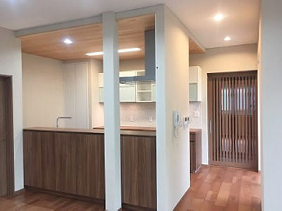 隣の部屋との壁を取り払い、解放感のある一続きのダイニングキッチンにしました。