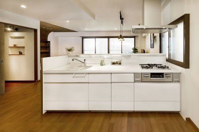出産を機に、ご主人の実家だったマンションに住むことになったK様。本格的な子育てを見据え、家族3人で暮らしやすいようにフルリフォームしました。床や建具は、温もりのあるチェリー柄でコーディネート。キッチンはお子さんを見守りながら家事ができる対面式に。ゴロンと横になれるスペースもあり、子育てに適した住まいに生まれ変わりました。将来、持ち物が増えても対応できるように、ウォークインクローゼットなどの収納を各部屋に設けました。