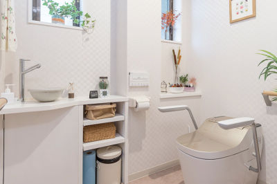 2つの狭いトイレをひとつにして広々とした空間に。お父様用の手すりも設置。
