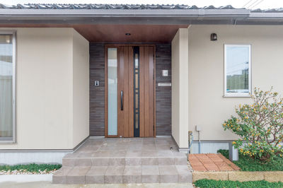 入り口を変え、和風の趣を残しつつ生まれ変わった玄関。敷石が重厚感を演出します。