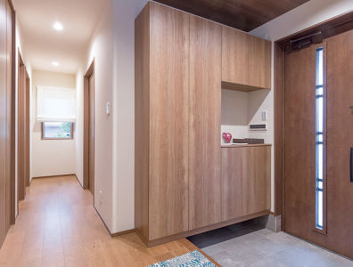 玄関にはシュークローゼットとは別に物入れを設置。細々した荷物を収納することができます。