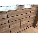 垂れ壁の吊り戸棚は背が高くて使いづらく、欲しい所に収納スペースがない。シンク横に食洗機を置いて使用していました。