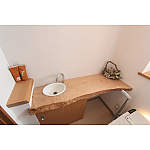 洗面カウンターは一枚板でご夫婦が選んだこだわりのひとつ