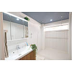 天井をネイビーにし洗面のダークカラーでコーディネート
