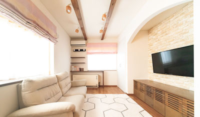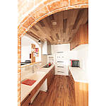 和室をリビングに。カウンターの上部の垂れ壁のアーチがやわらかい印象を演出。