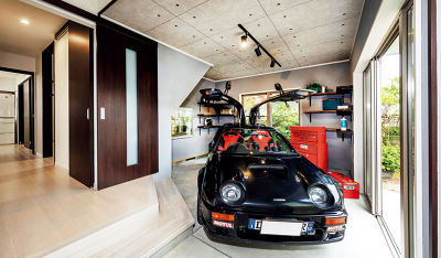 リフォームの最大の特徴は、ガレージのようなギャラリーゾーンが屋内にあること。以前は洋室だったスペースを玄関とつないで、常に愛車がそばにある生活を提案したことです。好きなものに囲まれる生活は、N様の気持ちを前向きにしてくれたようです。