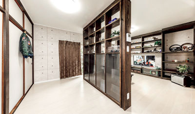 リフォームの最大の特徴は、ガレージのようなギャラリーゾーンが屋内にあること。以前は洋室だったスペースを玄関とつないで、常に愛車がそばにある生活を提案したことです。好きなものに囲まれる生活は、N様の気持ちを前向きにしてくれたようです。