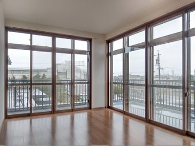 見晴らしの良い大開口窓ですが、夏暑く冬が寒いお部屋でした。