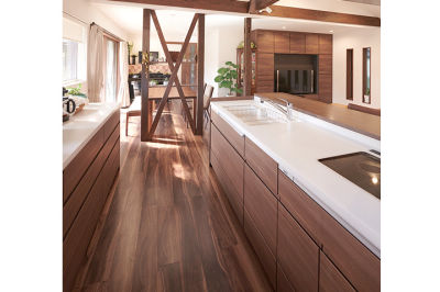 また、足元の段差をなくしたいが、天井は低くしたくないとのことでしたので、天井裏にあった立派な梁をあらわにし、天井を高く開放感と木のぬくもりを感じられるようにしました。