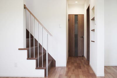 LDK内に階段を設けることで、帰宅した子どもたちが自分たちの部屋へ上がる時に顔を合わせられて安心です。