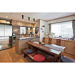 「家具のようなインテリア性の高いキッチン」をというのが奥様からのご要望でした。インテリアや小物、雑貨集めがお好きな奥様のリクエストでカップボードはセパレート型にし、その間に間接照明を埋め込んだ飾り棚を設けました。お気に入りの小物たちが美しく照らされ、キッチンの雰囲気を高めます。扉柄や壁紙などは、ダイニングのインテリアに合わせてセレクトしたことで、まるでダイニングキッチンをまとめてリフォームしたような一体感が生まれました。