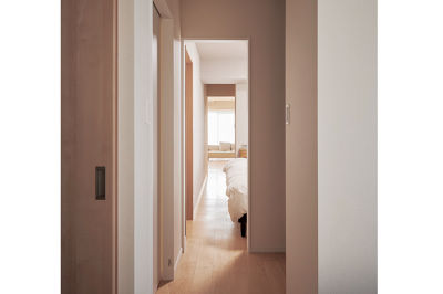 また、海に近く湿気がこもりやすいので、引き戸をすべて開け放ち、窓を開ければ風が住まい中を通り空気を入れ替えられます。回遊動線もでき、キッチンにいながら子供部屋にいるご兄弟の気配が感じられ、離れていてもつながる、親も子も安心して過ごせる間取りとなりました。