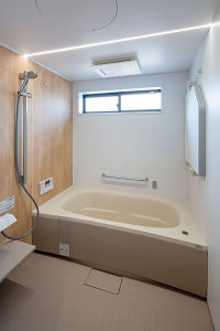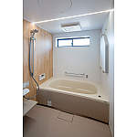 増築で大きさを広げ、足を延ばしてゆったり浸かることができる広さになりました。最新のユニットバスで室内も浴槽も保温ばっちりです