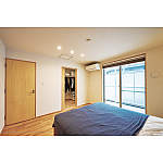 一階には収納の奥に水廻りと寝室を配置。洗濯機を置いた洗面室と隣接する寝室のウッドデッキで、洗濯物を干せます。取り込んだ洗濯物は、寝室の大きなウォークインクローゼットや洗面室収納にしまえて、スムーズな洗濯動線を実現しました。
