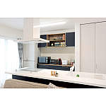 お子様の誕生を機に、ご主人のご実家の2階をリフォーム。浴室以外の新しい生活スペースを設けた半独立型の二世帯に。「限られた空間をできるだけ広く使えるようにしたい」というご要望でした。そこで、洋室2つと廊下部分をひとつにして広いLDKに。洗面・洗濯スペースをキッチンに隣接して横に配置し、生活のほとんどをLDKで完結できる家事動線のよい間取りをご提案しました。料理や洗濯、歯磨きのときも、幼いお子様の様子を見守ることができます。