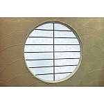 物干し空間とインナーガレージの壁には透かし模様の入った丸窓を。光の加減で紅葉の図柄が浮かび上がるという遊び心も。