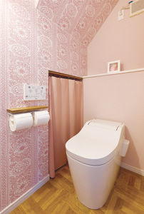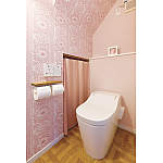 北欧テイストのクロスで大人可愛いインテリアの洗面・トイレ空間。