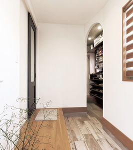 愛犬が落ち着いて過ごせるよう、壁際のカウンター下にお家をリニューアル。リビングの床は滑らない上質な挽き板にして床暖房を入れたので、愛犬の足への負担が少なく、冬も快適に。さらに、ペットのニオイを軽減する自然素材の塗り壁で、皆が一緒に楽しく過ごせる住まいになりました。