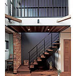 アイアンの階段とレンガ壁で個性が光る、異素材を組み合わせたインテリア。