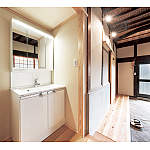 玄関土間はそのままに浴室・トイレにつながる渡り廊下を設けて、移動をスムーズに。