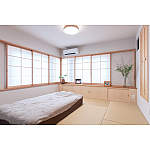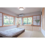 耐震フレームを入れてコーナー部分も開口とし、最大限に借景と自然光を取り込んだ和室。