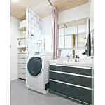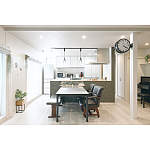 ご実家の2階をリフォームし、新生活をスタートしたS様。専用の玄関、家族4人が自然に集まる広いLDK、十分な収納をご希望でした。玄関は1階に新設し、2階の生活空間はモノトーンでコーディネイトした大空間LDKに一新。アイランドキッチンを採用して、料理しながら家族団らんが楽しめる住まいとなりました。