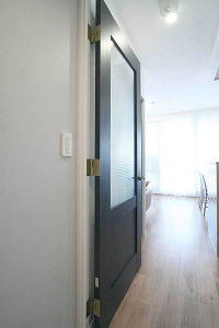 室内窓は外窓の無い寝室でも自然光を採り入れることができ、空気の入れ替えもできるように開閉タイプをご提案。タイルや扉との相性もバッチリです。