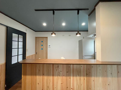 奥様が気に入ったドアとペンダントライトを設置。まるでカフェのような空間になりました。