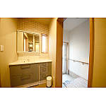 洗面化粧台の向きを変え、カウンタータイプの洗面化粧台を設置しました。2人並んでも窮屈になりません。