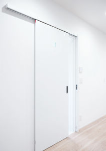 洗面脱衣室やホールへの出入り口は段差をなくしました。上吊り引き戸で開閉時も音が静かで気になりません。