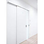 洗面脱衣室やホールへの出入り口は段差をなくしました。上吊り引き戸で開閉時も音が静かで気になりません。