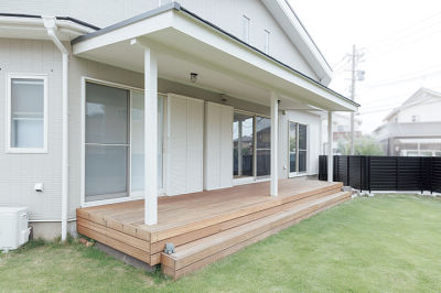 ウッドデッキと庇を新設。BBQやプールを楽しむことができ、屋外にも遊び場が広がります。