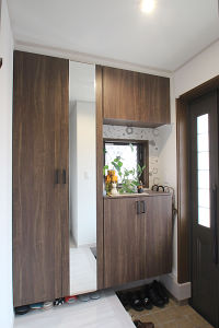 新たな玄関収納はW1600にし、以前よりも大きな玄関収納を設置。