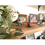 レンジフードの背面は収納スペースになっており、雑貨やご家族のお写真が飾られています。