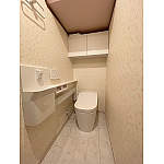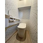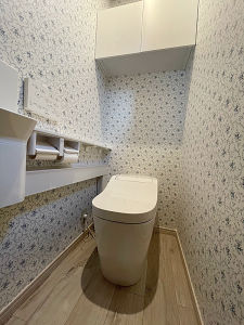 毎日、お掃除していても「汚れ」「埃」は何時でも目に飛び込んできます。いつも清潔感のある空間をアラウーノが実現しました。1F、2Fそれぞれのレストルームがお客様のお好みのクロスで、明るい空間に仕上がりました。