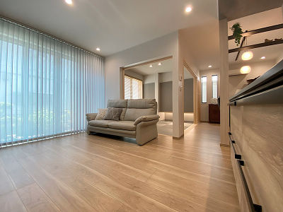 間仕切り壁を撤去し広々とした空間と明るさへ。断熱材、複層ガラス、床暖房で高性能で快適な住まいを実現。