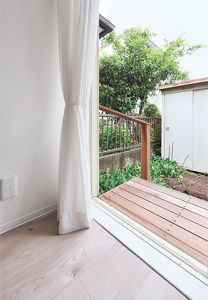 リビングと庭をつなげるデッキスペースを新設。窓を開ければアウトドアリビングとしても楽しめます。