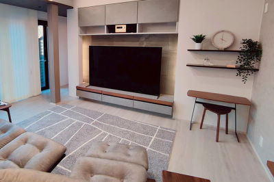 ホテルライクな非日常感を演出するため内装は上品なモノトーンで統一。将来息子様ご一家が住まわれることを想定し、機能的な間取り・設備も充実させました。
