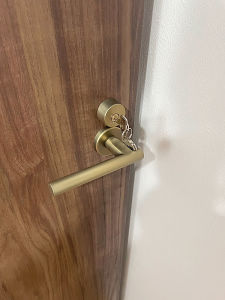 お子様の成長に伴い、家庭内の安全対策がますます重要になります。そこで、お子様の安全を最優先に考え、室内ドアを鍵付きのタイプに交換しました。室内の雰囲気を損なわないよう、既存のデザインに近いドアを選定し、違和感のない仕上がりとなっています。